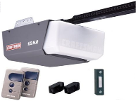 EL motors liftmaster de garaje de 1/2 HP con tTransmisión de cadena. Vataje de la bombilla: 75 vatios. Tipo de controlador de pared: Timbre iluminado. Entrada a control remoto. 2 controles remotos incluidos. Sensor de seguridad con contacto y sin contacto. Iluminación conveniente.